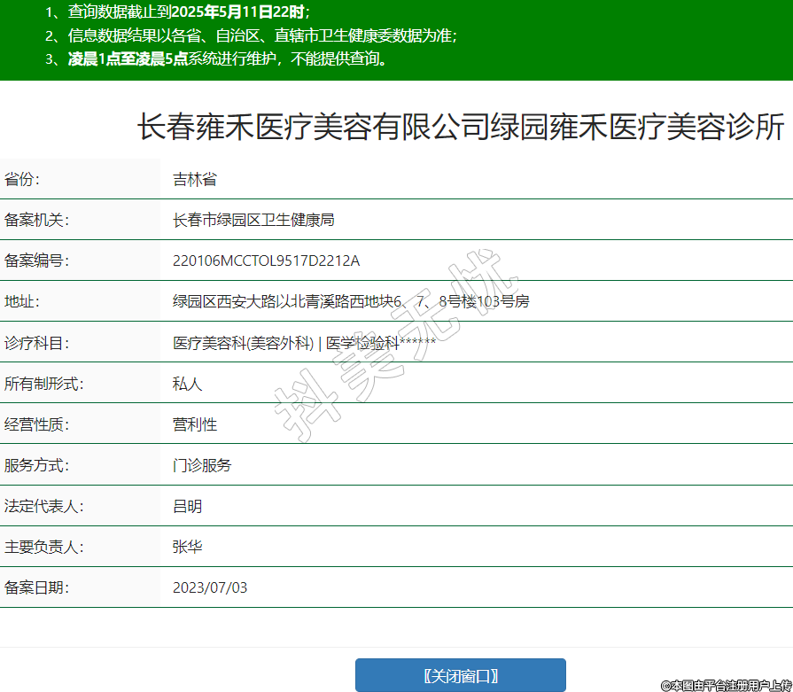 長(zhǎng)春雍禾醫(yī)療美容有限公司綠園雍禾醫(yī)療美容診所