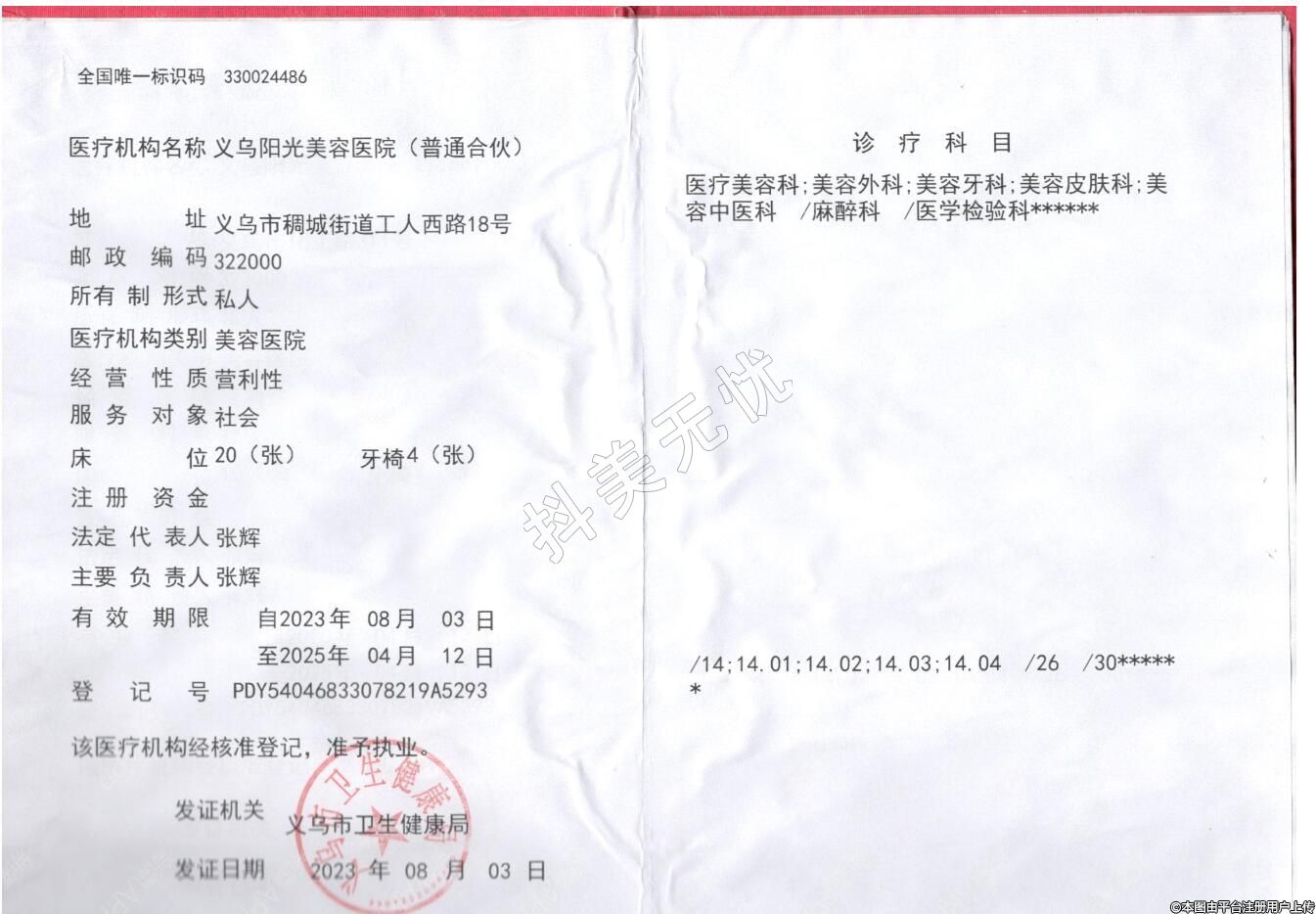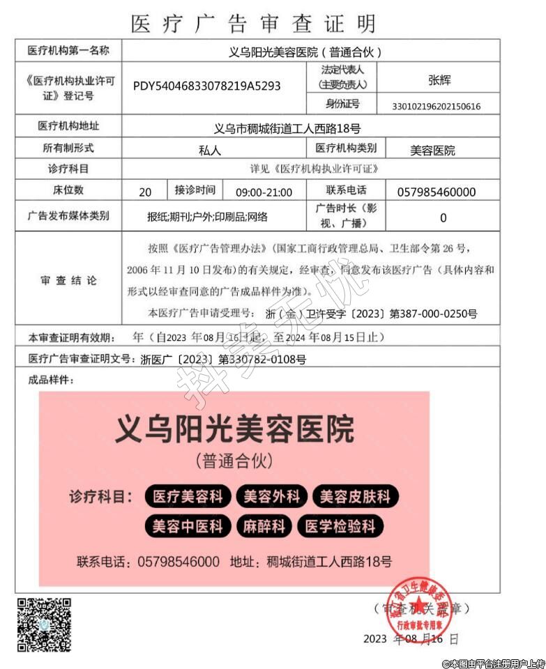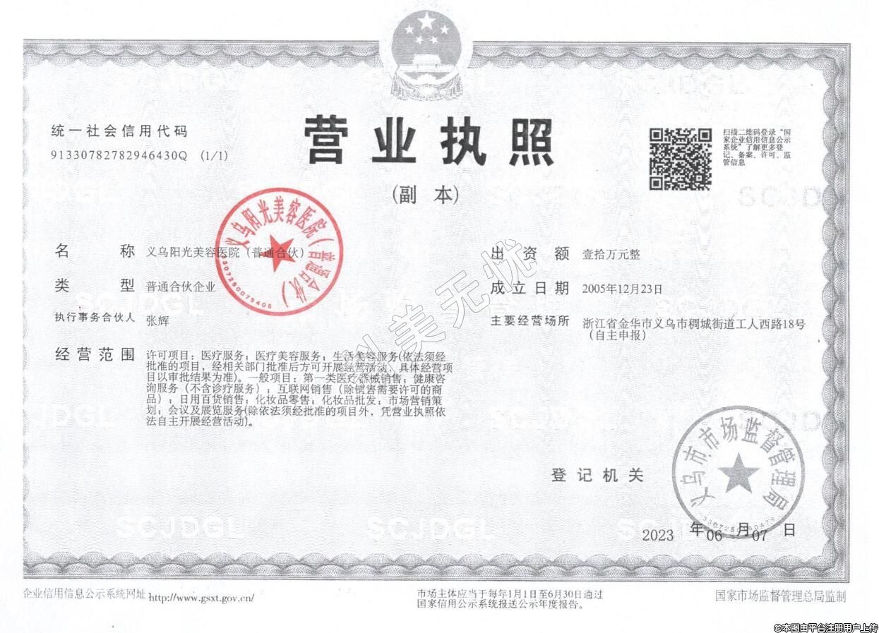 醫(yī)療機構(gòu)名稱:義烏陽光美容醫(yī)院(普通合伙)