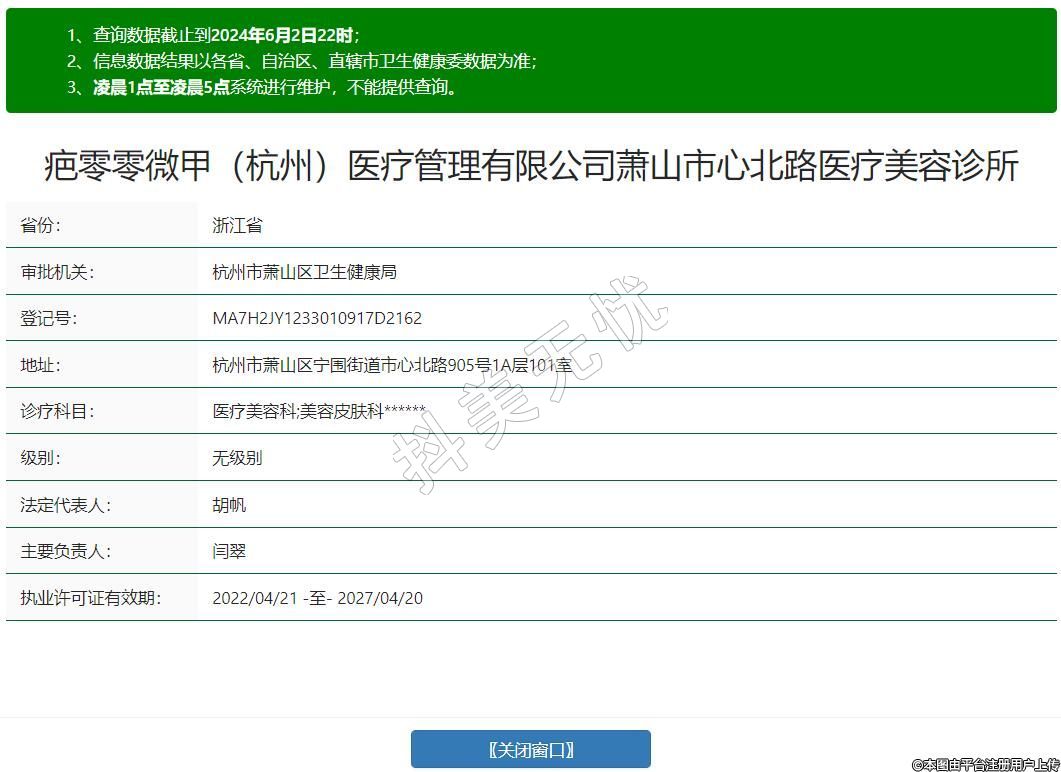 疤零零微甲(杭州)醫(yī)療管理有限公司蕭山市心北路醫(yī)療美容診所