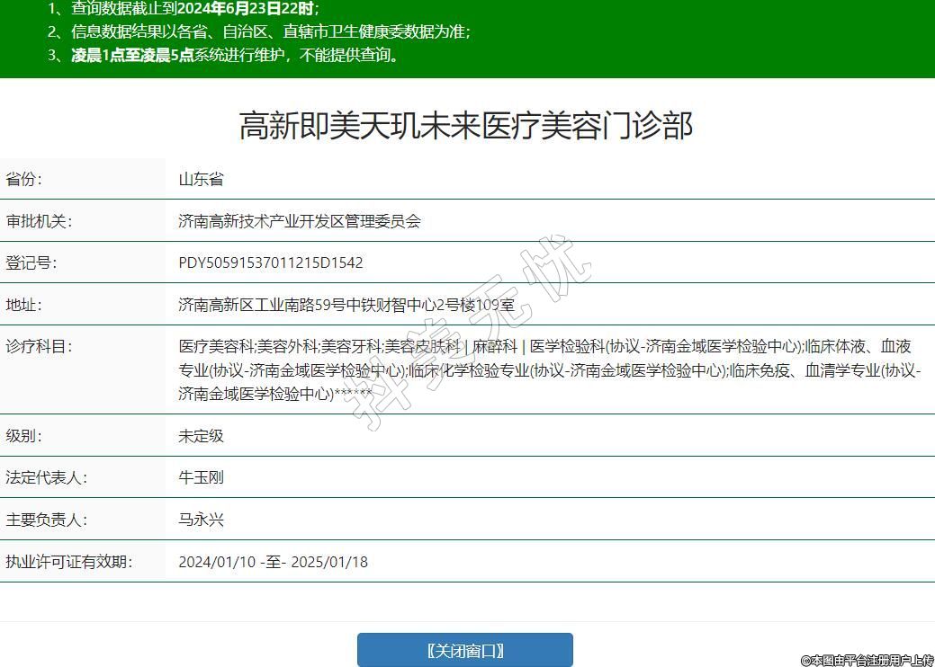 醫(yī)療美容科;美容外科;美容牙科;美容皮膚科 | 麻醉科 | 醫(yī)學(xué)檢驗(yàn)科(協(xié)議-濟(jì)南金域醫(yī)學(xué)檢驗(yàn)中心);臨床體液、血液專(zhuān)業(yè)(協(xié)議-濟(jì)南金域醫(yī)學(xué)檢驗(yàn)中心);臨床化學(xué)檢驗(yàn)專(zhuān)業(yè)(協(xié)議-濟(jì)南金域醫(yī)學(xué)檢驗(yàn)中心);臨床免疫、血清學(xué)專(zhuān)業(yè)(協(xié)議-濟(jì)南金域醫(yī)學(xué)檢驗(yàn)中心)******