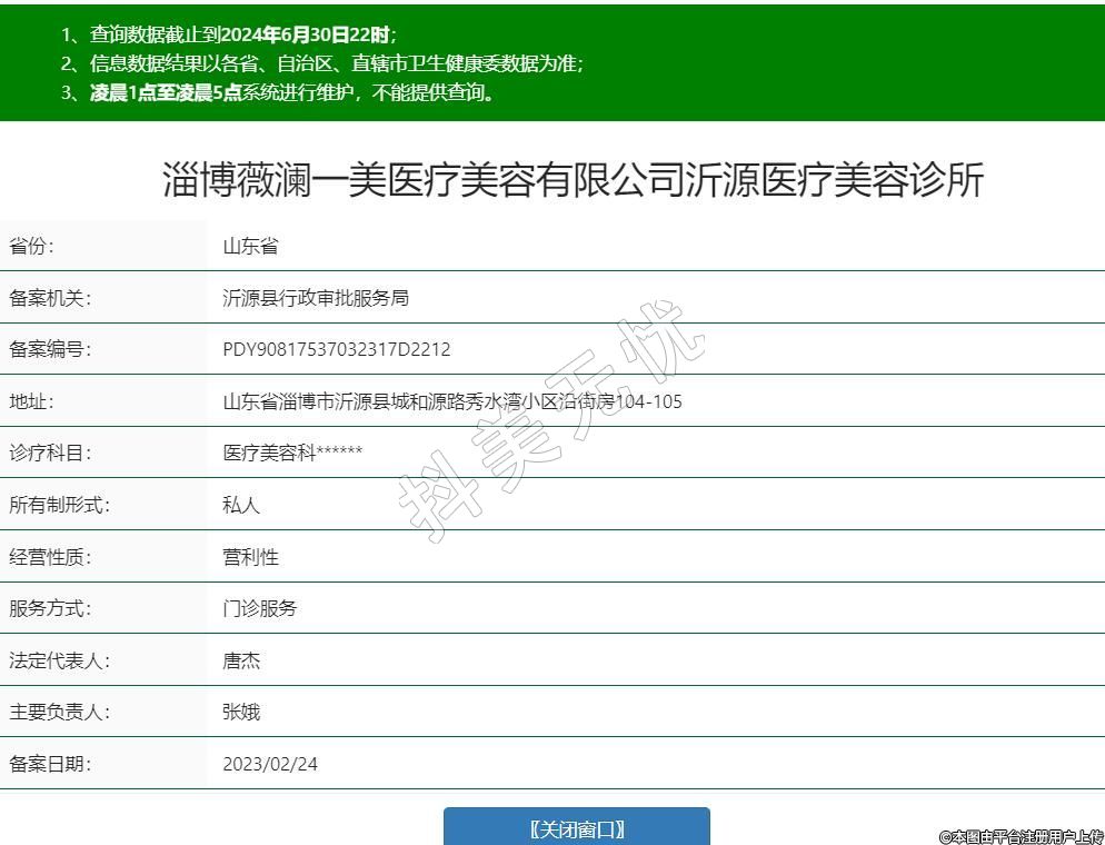 淄博薇瀾一美醫(yī)療美容有限公司沂源醫(yī)療美容診所,診療科目:醫(yī)療美容科******