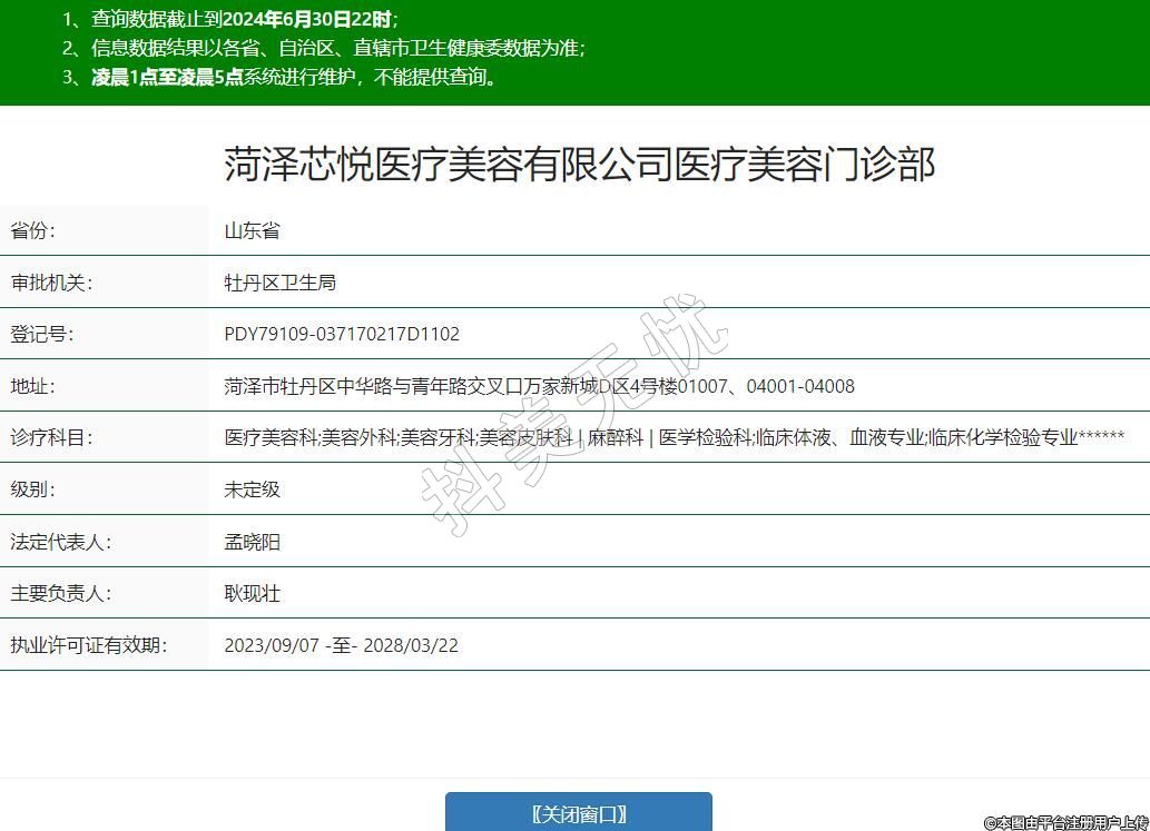 菏澤芯悅醫(yī)療美容有限公司醫(yī)療美容門診部