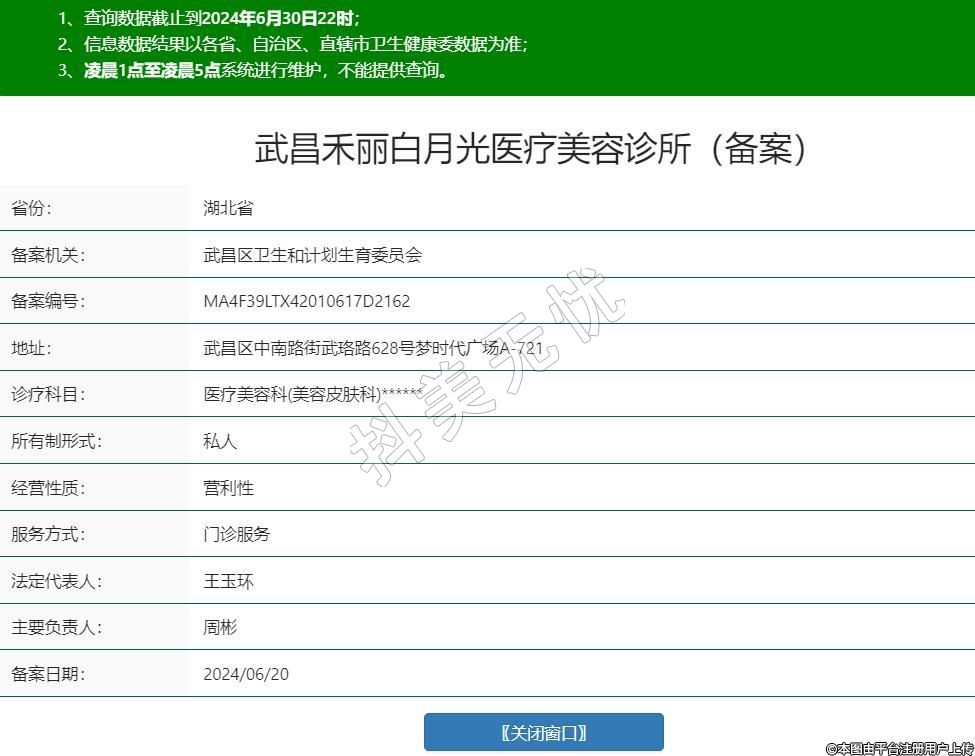 武昌禾麗白月光醫(yī)療美容診所(備案),診療科目:醫(yī)療美容科(美容皮膚科)******