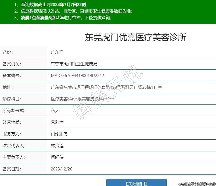 東莞虎門優(yōu)嘉醫(yī)療美容診所,診療科目:醫(yī)療美容科(僅限美容皮膚科)******