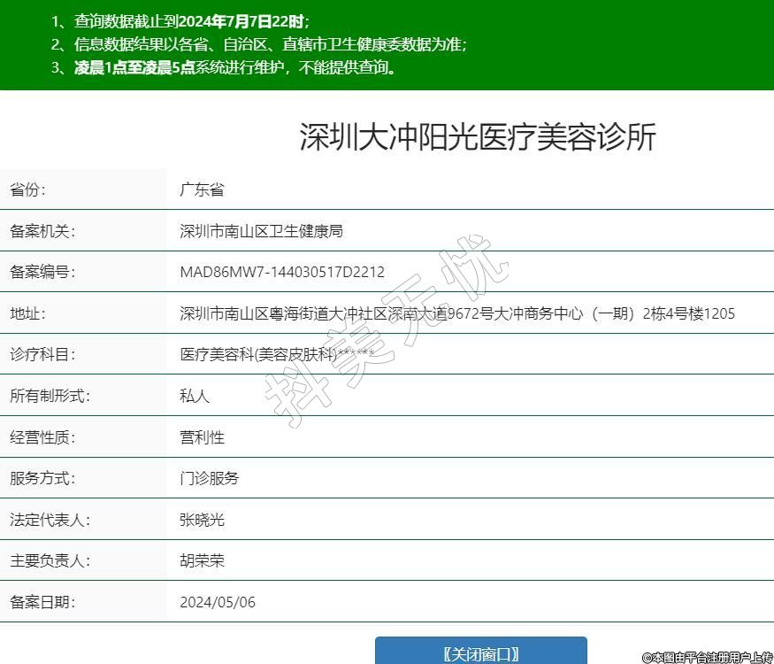 深圳大沖陽光醫(yī)療美容診所,診療科目:醫(yī)療美容科(美容皮膚科)******