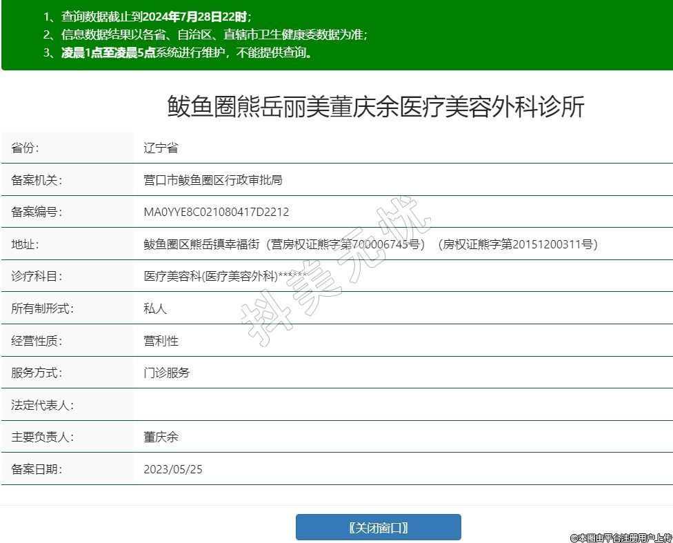 鲅魚圈熊岳麗美董慶余醫(yī)療美容外科診所,診療科目:醫(yī)療美容科(醫(yī)療美容外科)******
