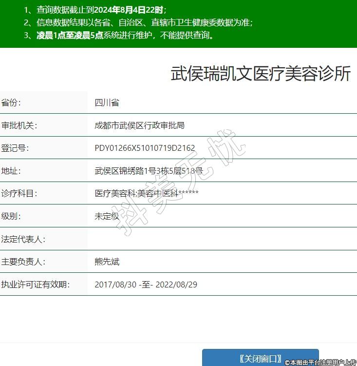 成都武侯瑞凱文醫(yī)療美容,診療科目:醫(yī)療美容科;美容中醫(yī)科******