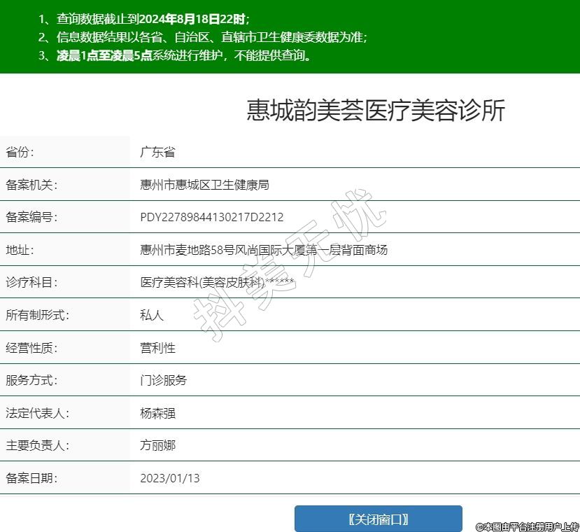 惠城韻美薈醫(yī)療美容診所,診療科目:醫(yī)療美容科(美容皮膚科)******