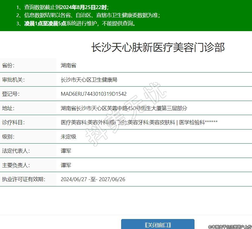 長沙天心膚新醫(yī)療美容門診部,診療科目:醫(yī)療美容科;美容外科(限門診);美容牙科;美容皮膚科 | 醫(yī)學(xué)檢驗科******