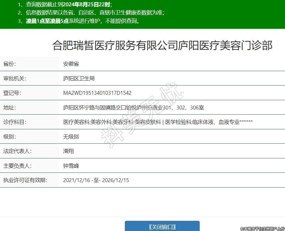 合肥瑞皙醫(yī)療服務(wù)有限公司廬陽醫(yī)療美容門診部
