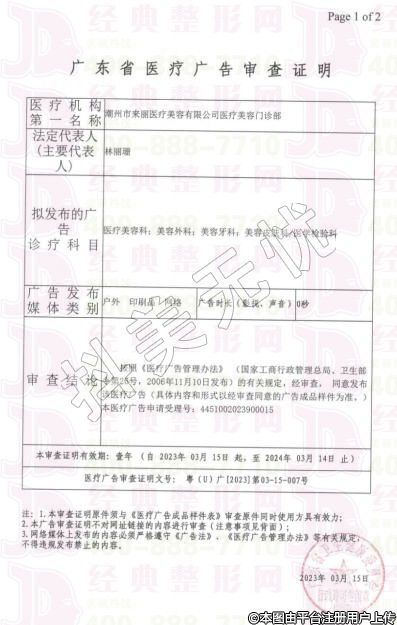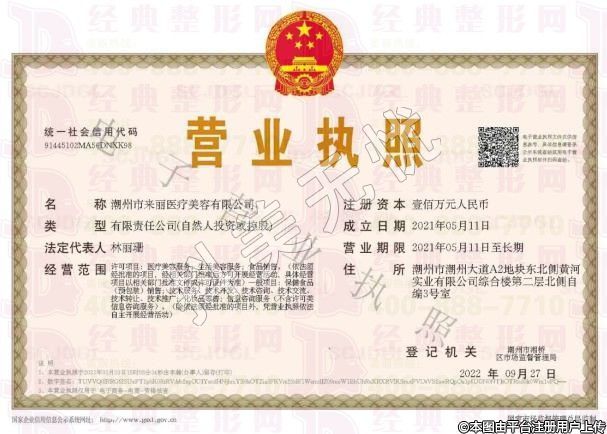 機構(gòu)名稱:潮州市愛麗諾來麗醫(yī)療美容有限公司醫(yī)療美容門診部