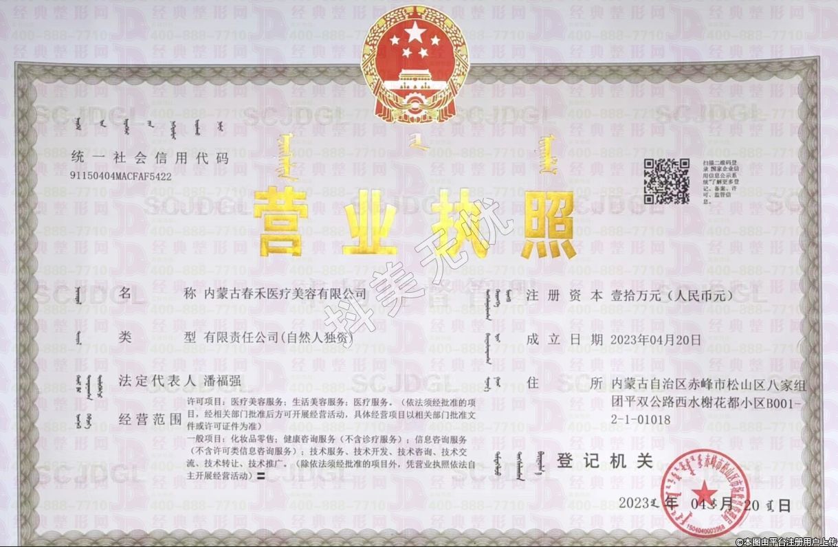 名稱:內(nèi)蒙古春禾醫(yī)療美容有限公司醫(yī)療美容診稱所