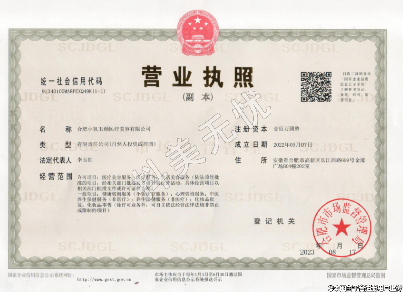 機構名稱:合肥高新區(qū)小氧玉顏醫(yī)療美容門診部