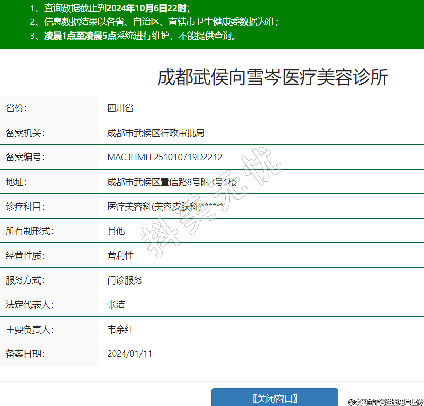 成都武侯向雪岑醫(yī)療美容診所