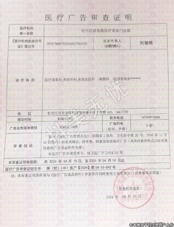 機構(gòu)名稱:牡丹江君美施醫(yī)療美容門診部