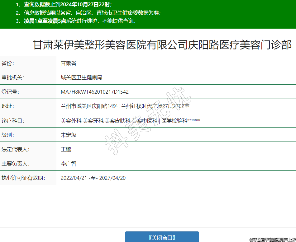 甘肅萊伊美整形美容醫(yī)院有限公司慶陽(yáng)路醫(yī)療美容門診部