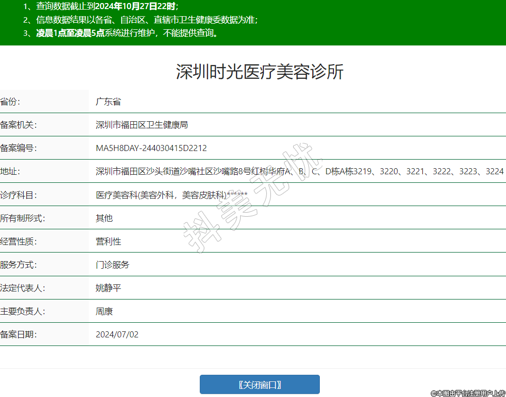 深圳時光醫(yī)療美容,診療科目:醫(yī)療美容科(美容外科,開展一級項目:不得開展靜脈輸液業(yè)務(wù))******