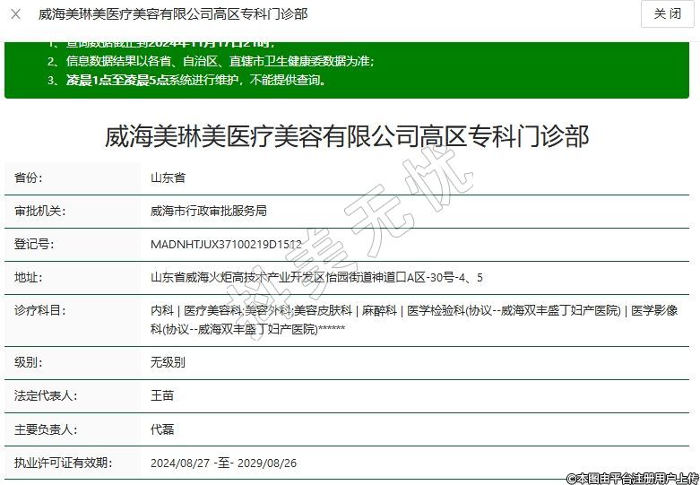 威海美琳美醫(yī)療美容有限公司高區(qū)專科門診部