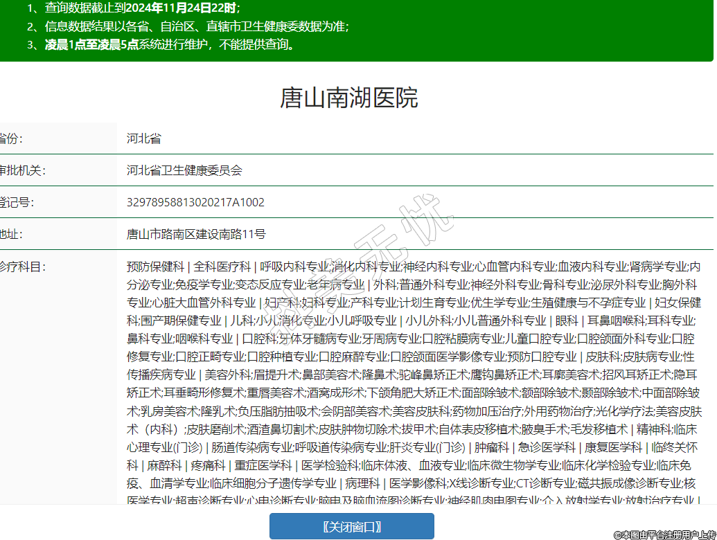 預防保健科 | 全科醫(yī)療科 | 呼吸內科專業(yè);消化內科專業(yè);神經內科專業(yè);心血管內科專業(yè);血液內科專業(yè);腎病學專業(yè);內分泌專業(yè);免疫學專業(yè);變態(tài)反應專業(yè);老年病專業(yè) | 外科;普通外科專業(yè);神經外科專業(yè);骨科專業(yè);泌尿外科專業(yè);胸外科專業(yè);心臟大血管外科專業(yè) | 婦產科;婦科專業(yè);產科專業(yè);計劃生育專業(yè);優(yōu)生學專業(yè);生殖健康與不孕癥專業(yè) | 婦女保健科;圍產期保健專業(yè) | 兒科;小兒消化專業(yè);小兒呼吸專業(yè) | 小兒外科;小兒普通外科專業(yè) | 眼科 | 耳鼻咽喉科;耳科專業(yè);鼻科專業(yè);咽喉科專業(yè) | 口腔科;牙體牙髓病專業(yè);牙周病專業(yè);口腔粘膜病專業(yè);兒童口腔專業(yè);口腔頜面外科專業(yè);口腔修復專業(yè);口腔正畸專業(yè);口腔種植專業(yè);口腔麻醉專業(yè);口腔頜面醫(yī)學影像專業(yè);預防口腔專業(yè) | 皮膚科;皮膚病專業(yè);性傳播疾病專業(yè) | 美容外科;眉提升術;鼻部美容術;隆鼻術;駝峰鼻矯正術;鷹鉤鼻矯正術;耳廓美容術;招風耳矯正術;隱耳矯正術;耳垂畸形修復術;重唇美容術;酒窩成形術;下頜角肥大矯正術;面部除皺術;額部除皺術;顳部除皺術;中面部除皺術;乳房美容術;隆乳術;負壓脂肪抽吸術;會陰部美容術;美容皮膚科;藥物加壓治療;外用藥物治療;光化學療法;美容皮膚術(內科);皮膚磨削術;酒渣鼻切割術;皮膚腫物切除術;拔甲術;自體表皮移植術;腋臭手術;毛發(fā)移植術 | 精神科;臨床心理專業(yè)(門診) | 腸道傳染病專業(yè);呼吸道傳染病專業(yè);肝炎專業(yè)(門診) | 腫瘤科 | 急診醫(yī)學科 | 康復醫(yī)學科 | 臨終關懷科 | 麻醉科 | 疼痛科 | 重癥醫(yī)學科 | 醫(yī)學檢驗科;臨床體液、血液專業(yè);臨床微生物學專業(yè);臨床化學檢驗專業(yè);臨床免疫、血清學專業(yè);臨床細胞分子遺傳學專業(yè) | 病理科 | 醫(yī)學影像科;X線診斷專業(yè);CT診斷專業(yè);磁共振成像診斷專業(yè);核醫(yī)學專業(yè);超聲診斷專業(yè);心電診斷專業(yè);腦電及腦血流圖診斷專業(yè);神經肌肉電圖專業(yè);介入放射學專業(yè);放射治療專業(yè) | 中醫(yī)科;內科專業(yè);外科專業(yè);婦產科專業(yè);腫瘤科專業(yè);老年病科專業(yè);針灸科專業(yè);康復醫(yī)學專業(yè)******