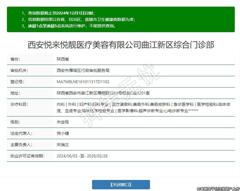 西安悅來悅靚醫(yī)療美容有限公司曲江新區(qū)綜合門診部