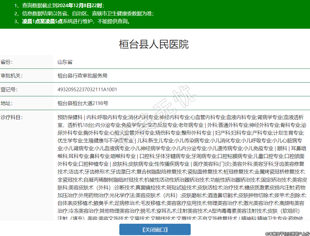 預(yù)防保健科 | 內(nèi)科;呼吸內(nèi)科專業(yè);消化內(nèi)科專業(yè);神經(jīng)內(nèi)科專業(yè);心血管內(nèi)科專業(yè);血液內(nèi)科專業(yè);腎病學(xué)專業(yè)(血液透析室,透析機(jī)18臺(tái));內(nèi)分泌專業(yè);免疫學(xué)專業(yè);變態(tài)反應(yīng)專業(yè);老年病專業(yè) | 外科;普通外科專業(yè);神經(jīng)外科專業(yè);骨科專業(yè);泌尿外科專業(yè);胸外科專業(yè);心臟大血管外科專業(yè);燒傷科專業(yè);整形外科專業(yè) | 婦產(chǎn)科;婦科專業(yè);產(chǎn)科專業(yè);計(jì)劃生育專業(yè);優(yōu)生學(xué)專業(yè);生殖健康與不孕癥專業(yè) | 兒科;新生兒專業(yè);小兒傳染病專業(yè);小兒消化專業(yè);小兒呼吸專業(yè);小兒心臟病專業(yè);小兒腎病專業(yè);小兒血液病專業(yè);小兒神經(jīng)病學(xué)專業(yè);小兒內(nèi)分泌專業(yè);小兒遺傳病專業(yè);小兒免疫專業(yè) | 眼科 | 耳鼻咽喉科;耳科專業(yè);鼻科專業(yè);咽喉科專業(yè) | 口腔科;牙體牙髓病專業(yè);牙周病專業(yè);口腔粘膜病專業(yè);兒童口腔專業(yè);口腔頜面外科專業(yè);口腔種植專業(yè) | 皮膚科;皮膚病專業(yè);性傳播疾病專業(yè) | 醫(yī)療美容科(門(mén)診);美容外科;美容牙科;牙齒美容修復(fù)技術(shù);潔齒術(shù);牙齒修形術(shù);牙齒漂白術(shù);復(fù)合樹(shù)脂黏結(jié)修復(fù)技術(shù);瓷貼面修復(fù)技術(shù);樁冠修復(fù)技術(shù);金屬烤瓷冠橋修復(fù)技術(shù);全瓷冠技術(shù);自凝丙稀酸樹(shù)脂臨時(shí)冠技術(shù);機(jī)械性活動(dòng)性矯治器矯治技術(shù);功能性矯治器矯治技術(shù);固定矯治技術(shù);美容皮膚科;美容皮膚術(shù)(外科);診斷技術(shù);真菌鏡檢技術(shù);斑貼試驗(yàn)技術(shù);皮膚活檢術(shù);治療技術(shù);糖皮質(zhì)激素皮損內(nèi)注射;藥物加壓治療;外用藥物治療;光化學(xué)療法;美容皮膚術(shù)(內(nèi)科);皮膚磨削術(shù);酒渣鼻切割術(shù);皮膚腫物切除術(shù);拔甲術(shù);刮除術(shù);自體表皮移植術(shù);腋臭手術(shù);足病修治術(shù);毛發(fā)移植術(shù);美容醫(yī)療應(yīng)用技術(shù);物理美容治療術(shù);激光美容治療術(shù);高頻電美容治療;冷凍美容治療;其他物理美容治療;脫毛術(shù);穿耳孔術(shù);注射美容技術(shù);A型肉毒毒素美容注射技術(shù);皮膚(軟組織)注射(填充)美容;美容文飾技術(shù);文眉技術(shù);文眼線技術(shù);文唇技術(shù);不良文飾修復(fù)技術(shù) | 精神科;精神衛(wèi)生專業(yè);藥物依賴專業(yè);精神康復(fù)專業(yè);臨床心理專業(yè) | 傳染科;腸道傳染病專業(yè);呼吸道傳染病專業(yè);肝炎專業(yè);蟲(chóng)媒傳染病專業(yè);動(dòng)物源性傳染病專業(yè) | 腫瘤科 | 急診醫(yī)學(xué)科 | 康復(fù)醫(yī)學(xué)科 | 麻醉科 | 疼痛科 | 重癥醫(yī)學(xué)科 | 醫(yī)學(xué)檢驗(yàn)科;臨床體液、血液專業(yè);臨床微生物學(xué)專業(yè);臨床化學(xué)檢驗(yàn)專業(yè);臨床免疫、血清學(xué)專業(yè);臨床細(xì)胞分子遺傳學(xué)專業(yè) | 病理科 | 醫(yī)學(xué)影像科;X線診斷專業(yè);CT診斷專業(yè);磁共振成像診斷專業(yè);核醫(yī)學(xué)專業(yè);超聲診斷專業(yè);心電診斷專業(yè);腦電及腦血流圖診斷專業(yè);神經(jīng)肌肉電圖專業(yè);介入放射學(xué)專業(yè);放射治療專業(yè) | 中醫(yī)科;內(nèi)科專業(yè);外科專業(yè);婦產(chǎn)科專業(yè);兒科專業(yè);皮膚科專業(yè);眼科專業(yè);耳鼻咽喉科專業(yè);口腔科專業(yè);骨傷科專業(yè);肛腸科專業(yè);老年病科專業(yè);針灸科專業(yè);推拿科專業(yè);康復(fù)醫(yī)學(xué)專業(yè)******