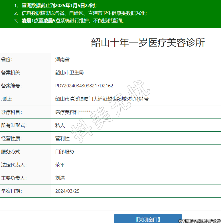 韶山十年一歲醫(yī)療美容診所,診療科目: 醫(yī)療美容科******