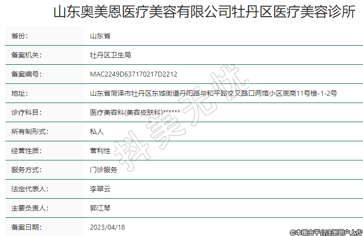 山東奧美恩醫(yī)療美容有限公司牡丹區(qū)醫(yī)療美容診所