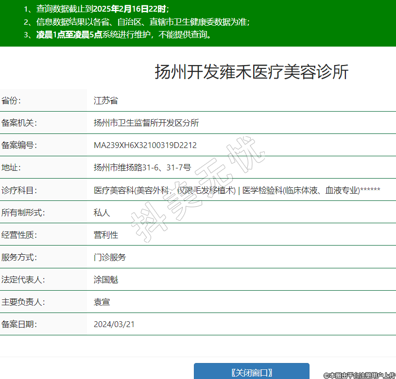 揚州開發(fā)雍禾醫(yī)療美容診所,診療科目:醫(yī)療美容科(美容外科,僅限毛發(fā)移植術(shù)) | 醫(yī)學檢驗科(臨床體液、血液專業(yè))******