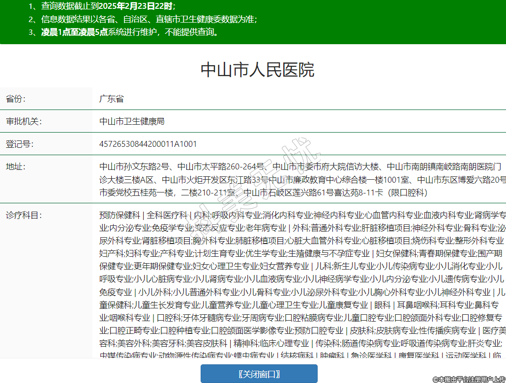 中山市孫文東路2號(hào)、中山市太平路260-264號(hào)、中山市市委市府大院信訪大樓、中山市南朗鎮(zhèn)南岐路南朗醫(yī)院門診大樓三樓A區(qū)、中山市火炬開發(fā)區(qū)東江路33號(hào)中山市廉政教育中心綜合樓一樓1001室、中山市東區(qū)博愛六路20號(hào)市委黨校五桂苑一樓,二樓210-211室、中山市石岐區(qū)蓮興路61號(hào)喜達(dá)苑8-11卡(限口腔科)