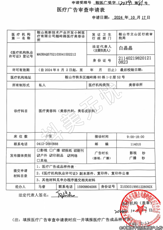 名稱:鞍山高新技術(shù)產(chǎn)業(yè)開發(fā)小樹醫(yī)療有限公司越嶺路醫(yī)療美容診所