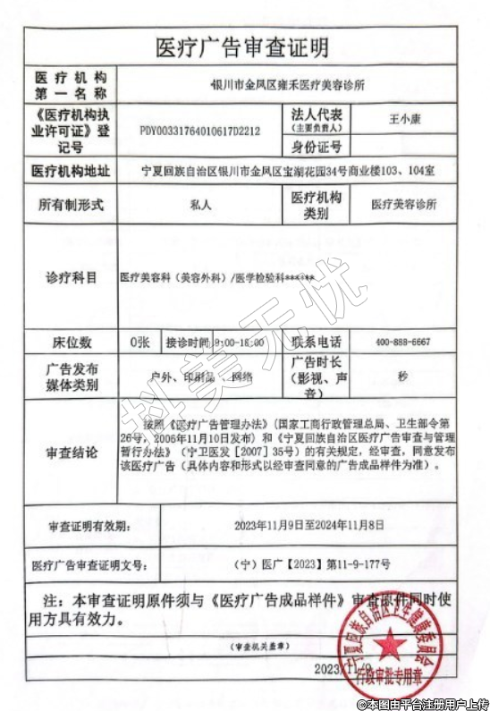 名稱:銀川市金鳳區(qū)雍禾醫(yī)療美容診所