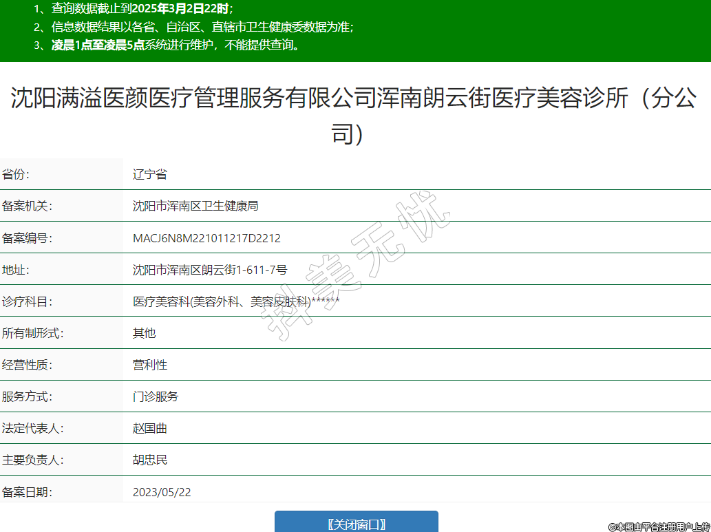 沈陽滿溢醫(yī)顏醫(yī)療管理服務有限公司渾南朗云街醫(yī)療美容診所(分公司)