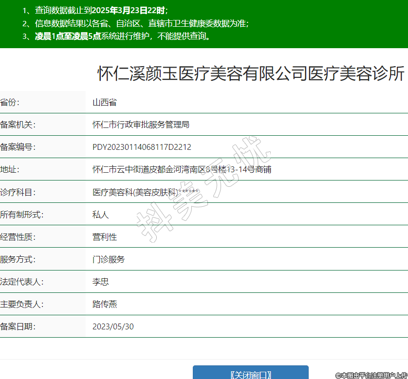 懷仁溪顏玉醫(yī)療美容有限公司醫(yī)療美容診所,診療科目:醫(yī)療美容科(美容皮膚科)******
