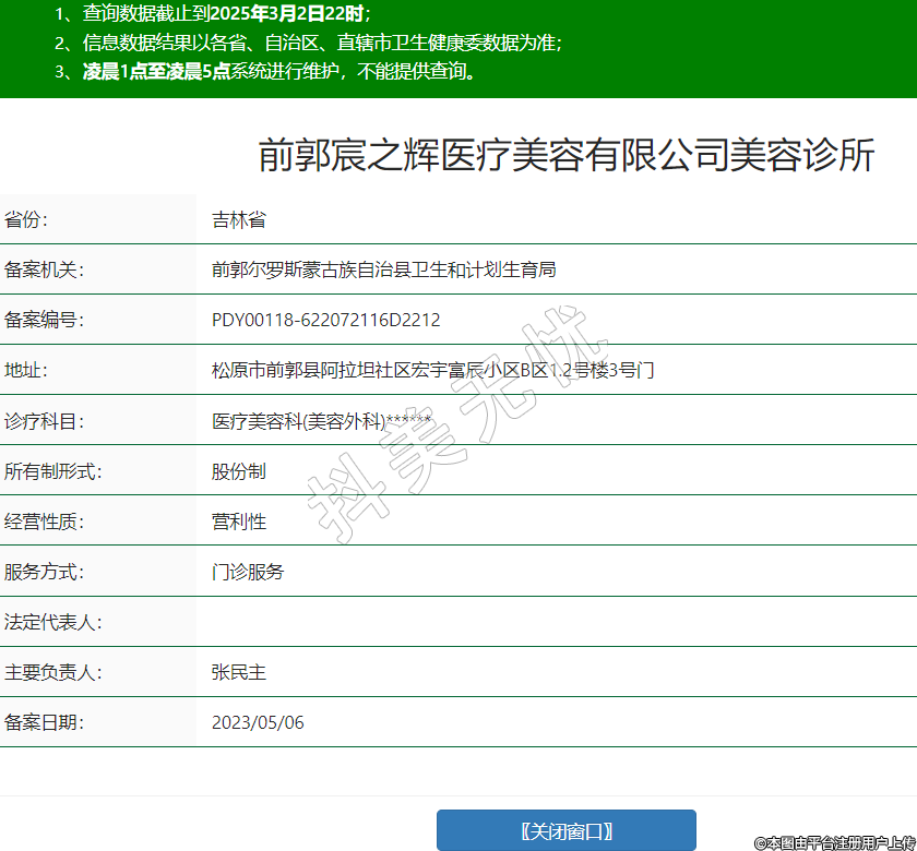 前郭宸之輝醫(yī)療美容有限公司美容診所,診療科目:醫(yī)療美容科(美容外科)******