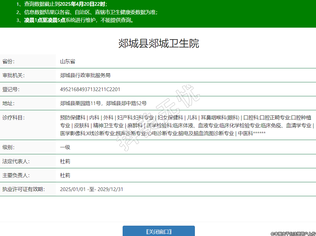 省份:山東省審批機(jī)關(guān):郯城縣行政審批服務(wù)局登記號(hào):49521684937132211C2201地址:郯城縣栗園路11號(hào),郯城縣郯中路52號(hào)診療科目:預(yù)防保健科 | 內(nèi)科 | 外科 | 婦產(chǎn)科;婦科專業(yè) | 婦女保健科 | 兒科 | 耳鼻咽喉科(眼科) | 口腔科;口腔正畸專業(yè);口腔種植專業(yè) | 皮膚科 | 精神衛(wèi)生專業(yè) | 麻醉科 | 醫(yī)學(xué)檢驗(yàn)科;臨床體液、血液專業(yè);臨床化學(xué)檢驗(yàn)專業(yè);臨床免疫、血清學(xué)專業(yè) | 醫(yī)學(xué)影像科;X線診斷專業(yè);超聲診斷專業(yè);心電診斷專業(yè);腦電及腦血流圖診斷專業(yè) | 中醫(yī)科******級(jí)別:一級(jí)法定代表人:杜莉主要負(fù)責(zé)人:杜莉執(zhí)業(yè)許可證有效期:2025/01/01 -至- 2029/12/31 -