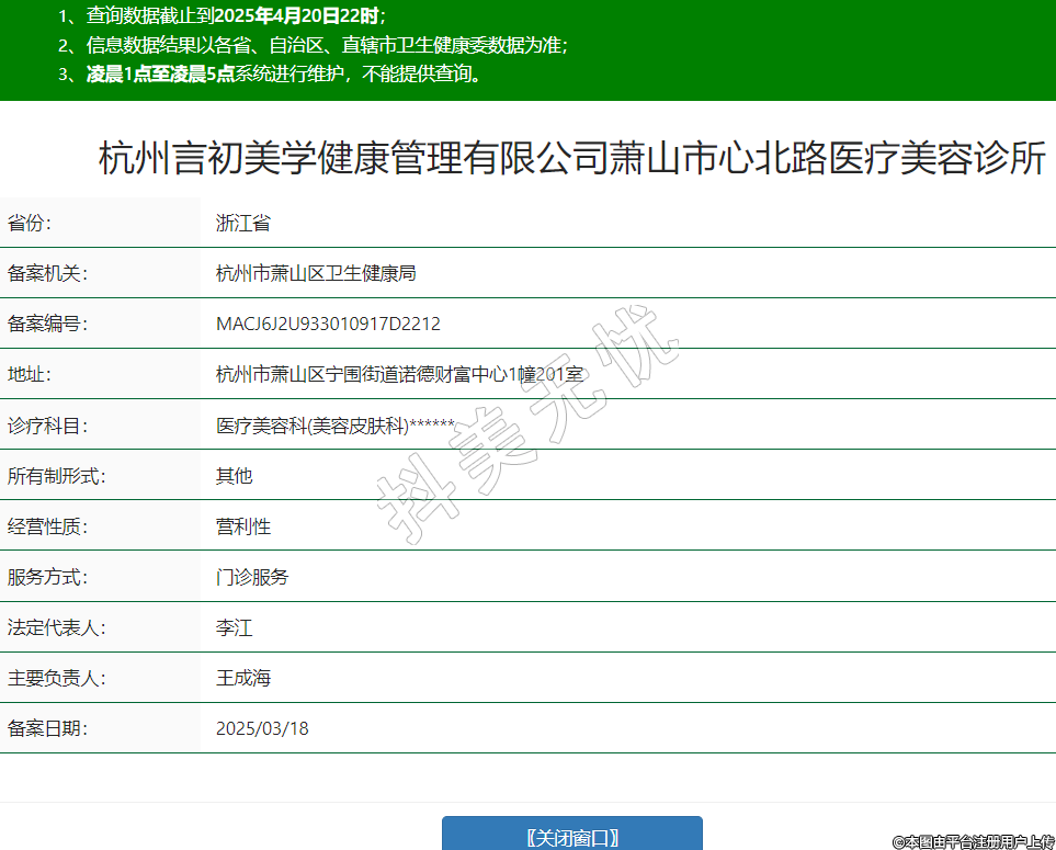 杭州言初美學健康管理有限公司蕭山市心北路醫(yī)療美容診所