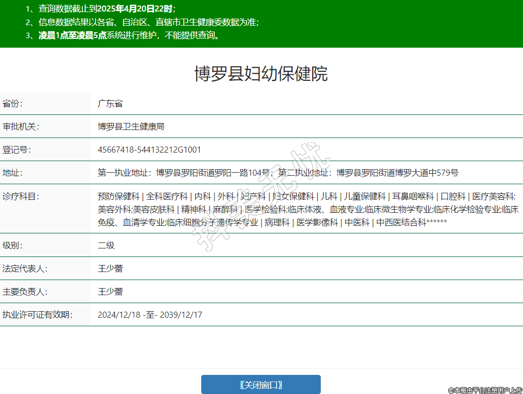 第一執(zhí)業(yè)地址:博羅縣羅陽街道羅陽一路104號;第二執(zhí)業(yè)地址:博羅縣羅陽街道博羅大道中579號