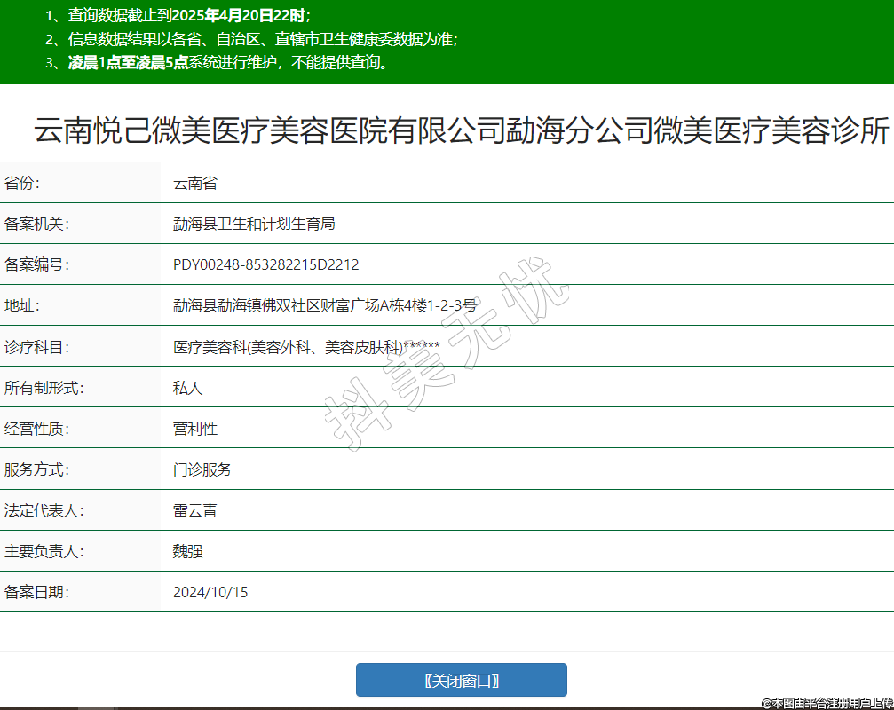 云南悅己微美醫(yī)療美容醫(yī)院有限公司勐海分公司微美醫(yī)療美容診所