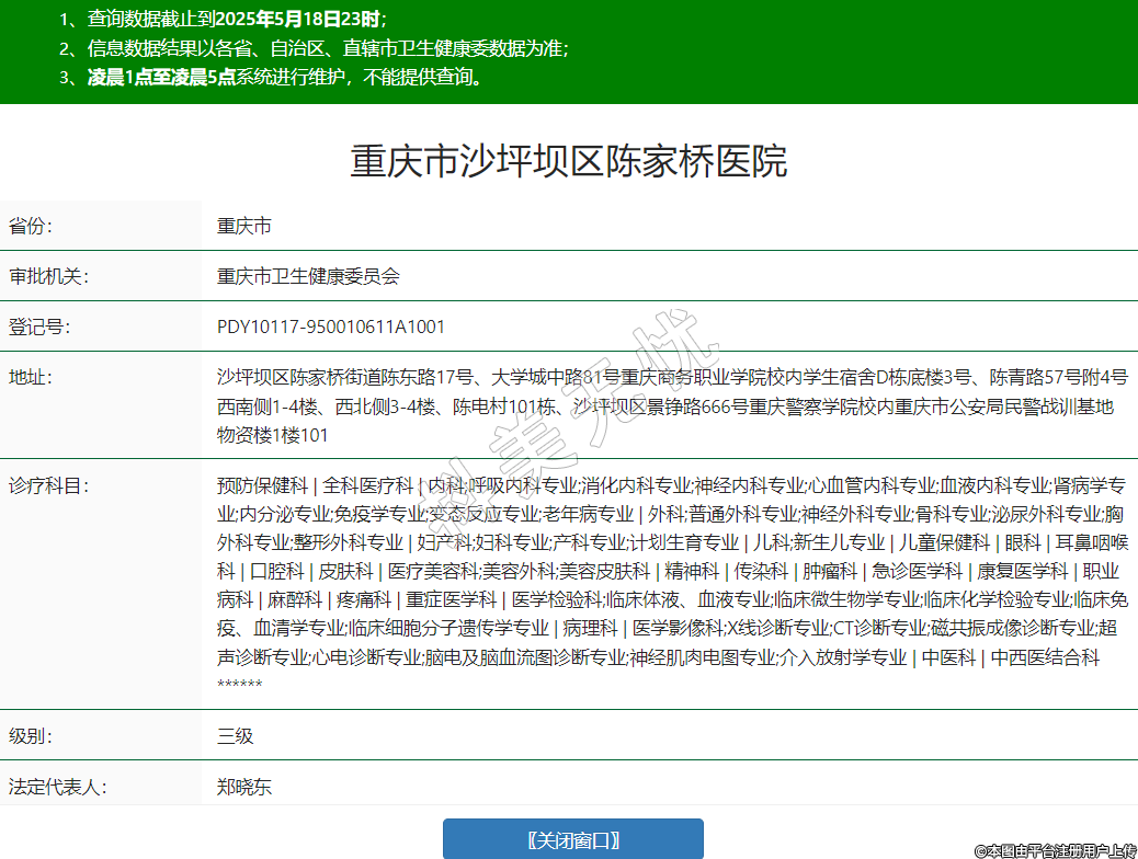 省份:重慶市審批機(jī)關(guān):重慶市衛(wèi)生健康委員會(huì)登記號(hào):PDY10117-950010611A1001地址:沙坪壩區(qū)陳家橋街道陳東路17號(hào)、大學(xué)城中路81號(hào)重慶商務(wù)職業(yè)學(xué)院校內(nèi)學(xué)生宿舍D棟底樓3號(hào)、陳青路57號(hào)附4號(hào)西南側(cè)1-4樓、西北側(cè)3-4樓、陳電村101棟、沙坪壩區(qū)景錚路666號(hào)重慶警察學(xué)院校內(nèi)重慶市公安局民警戰(zhàn)訓(xùn)基地物資樓1樓101診療科目:預(yù)防保健科 | 全科醫(yī)療科 | 內(nèi)科;呼吸內(nèi)科專(zhuān)業(yè);消化內(nèi)科專(zhuān)業(yè);神經(jīng)內(nèi)科專(zhuān)業(yè);心血管內(nèi)科專(zhuān)業(yè);血液內(nèi)科專(zhuān)業(yè);腎病學(xué)專(zhuān)業(yè);內(nèi)分泌專(zhuān)業(yè);免疫學(xué)專(zhuān)業(yè);變態(tài)反應(yīng)專(zhuān)業(yè);老年病專(zhuān)業(yè) | 外科;普通外科專(zhuān)業(yè);神經(jīng)外科專(zhuān)業(yè);骨科專(zhuān)業(yè);泌尿外科專(zhuān)業(yè);胸外科專(zhuān)業(yè);整形外科專(zhuān)業(yè) | 婦產(chǎn)科;婦科專(zhuān)業(yè);產(chǎn)科專(zhuān)業(yè);計(jì)劃生育專(zhuān)業(yè) | 兒科;新生兒專(zhuān)業(yè) | 兒童保健科 | 眼科 | 耳鼻咽喉科 | 口腔科 | 皮膚科 | 醫(yī)療美容科;美容外科;美容皮膚科 | 精神科 | 傳染科 | 腫瘤科 | 急診醫(yī)學(xué)科 | 康復(fù)醫(yī)學(xué)科 | 職業(yè)病科 | 麻醉科 | 疼痛科 | 重癥醫(yī)學(xué)科 | 醫(yī)學(xué)檢驗(yàn)科;臨床體液、血液專(zhuān)業(yè);臨床微生物學(xué)專(zhuān)業(yè);臨床化學(xué)檢驗(yàn)專(zhuān)業(yè);臨床免疫、血清學(xué)專(zhuān)業(yè);臨床細(xì)胞分子遺傳學(xué)專(zhuān)業(yè) | 病理科 | 醫(yī)學(xué)影像科;X線(xiàn)診斷專(zhuān)業(yè);CT診斷專(zhuān)業(yè);磁共振成像診斷專(zhuān)業(yè);超聲診斷專(zhuān)業(yè);心電診斷專(zhuān)業(yè);腦電及腦血流圖診斷專(zhuān)業(yè);神經(jīng)肌肉電圖專(zhuān)業(yè);介入放射學(xué)專(zhuān)業(yè) | 中醫(yī)科 | 中西醫(yī)結(jié)合科******級(jí)別:三級(jí)法定代表人:鄭曉東主要負(fù)責(zé)人:鄭曉東執(zhí)業(yè)許可證有效期:2024/12/05 -至- 2036/04/29 -