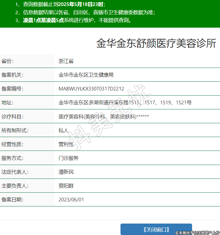 省份:浙江省備案機(jī)關(guān):金華市金東區(qū)衛(wèi)生健康局備案編號(hào):MABWUYLKX33070317D2212地址:金華市金東區(qū)多湖街道丹溪東路1515、1517、1519、1521號(hào)診療科目:醫(yī)療美容科(美容外科、美容皮膚科)******所有制形式:私人經(jīng)營(yíng)性質(zhì):營(yíng)利性服務(wù)方式:門診服務(wù)法定代表人:潘新民主要負(fù)責(zé)人:蔡陽(yáng)群備案日期:2023/06/01 -