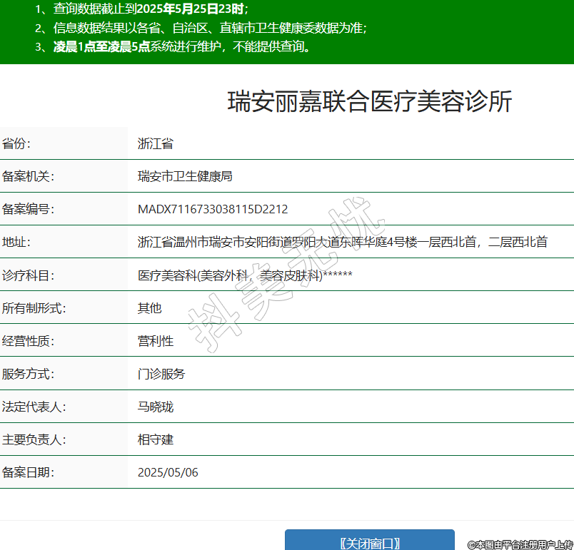 省份:浙江省備案機(jī)關(guān):瑞安市衛(wèi)生健康局備案編號(hào):MADX7116733038115D2212地址:浙江省溫州市瑞安市安陽街道羅陽大道東暉華庭4號(hào)樓一層西北首,二層西北首診療科目:醫(yī)療美容科(美容外科,美容皮膚科)******所有制形式:其他經(jīng)營(yíng)性質(zhì):營(yíng)利性服務(wù)方式:門診服務(wù)法定代表人:馬曉瓏主要負(fù)責(zé)人:相守建備案日期:2025/05/06 -
