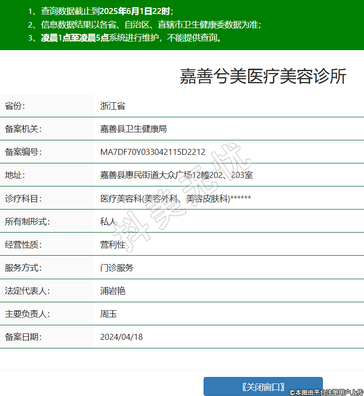 省份:浙江省備案機關(guān):嘉善縣衛(wèi)生健康局備案編號:MA7DF70Y033042115D2212地址:嘉善縣惠民街道大眾廣場12幢202、203室診療科目:醫(yī)療美容科(美容外科、美容皮膚科)******所有制形式:私人經(jīng)營性質(zhì):營利性服務(wù)方式:門診服務(wù)法定代表人:浦巖艷主要負(fù)責(zé)人:周玉備案日期:2024/04/18 -