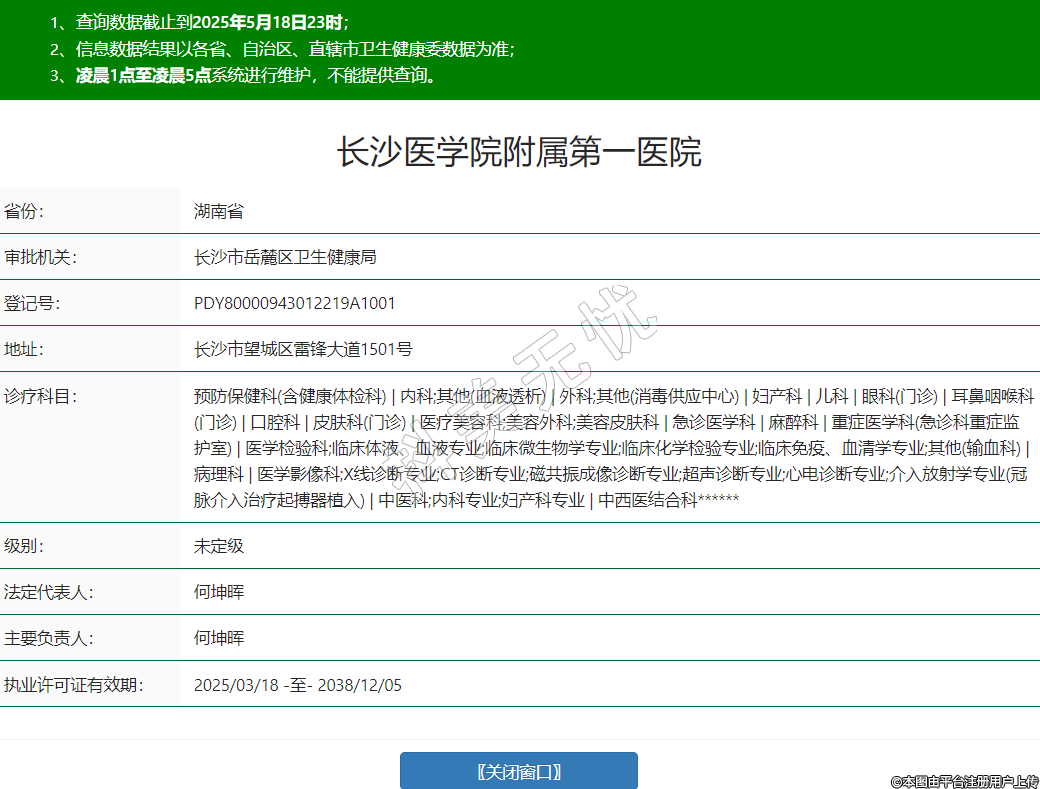 長(zhǎng)沙醫(yī)學(xué)院附屬第一醫(yī)院診療科目:預(yù)防保健科(含健康體檢科) | 內(nèi)科;其他(血液透析) | 外科;其他(消毒供應(yīng)中心) | 婦產(chǎn)科 | 兒科 | 眼科(門(mén)診) | 耳鼻咽喉科(門(mén)診) | 口腔科 | 皮膚科(門(mén)診) | 醫(yī)療美容科;美容外科;美容皮膚科 | 急診醫(yī)學(xué)科 | 麻醉科 | 重癥醫(yī)學(xué)科(急診科重癥監(jiān)護(hù)室) | 醫(yī)學(xué)檢驗(yàn)科;臨床體液、血液專(zhuān)業(yè);臨床微生物學(xué)專(zhuān)業(yè);臨床化學(xué)檢驗(yàn)專(zhuān)業(yè);臨床免疫、血清學(xué)專(zhuān)業(yè);其他(輸血科) | 病理科 ******