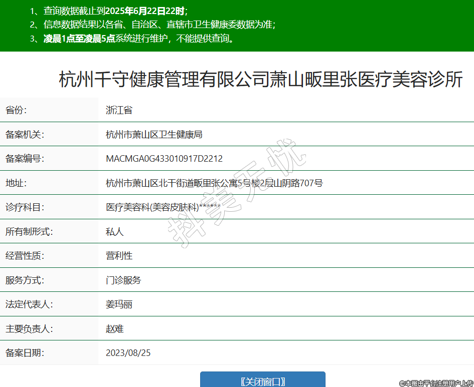 杭州千守健康管理有限公司蕭山畈里張醫(yī)療美容診所