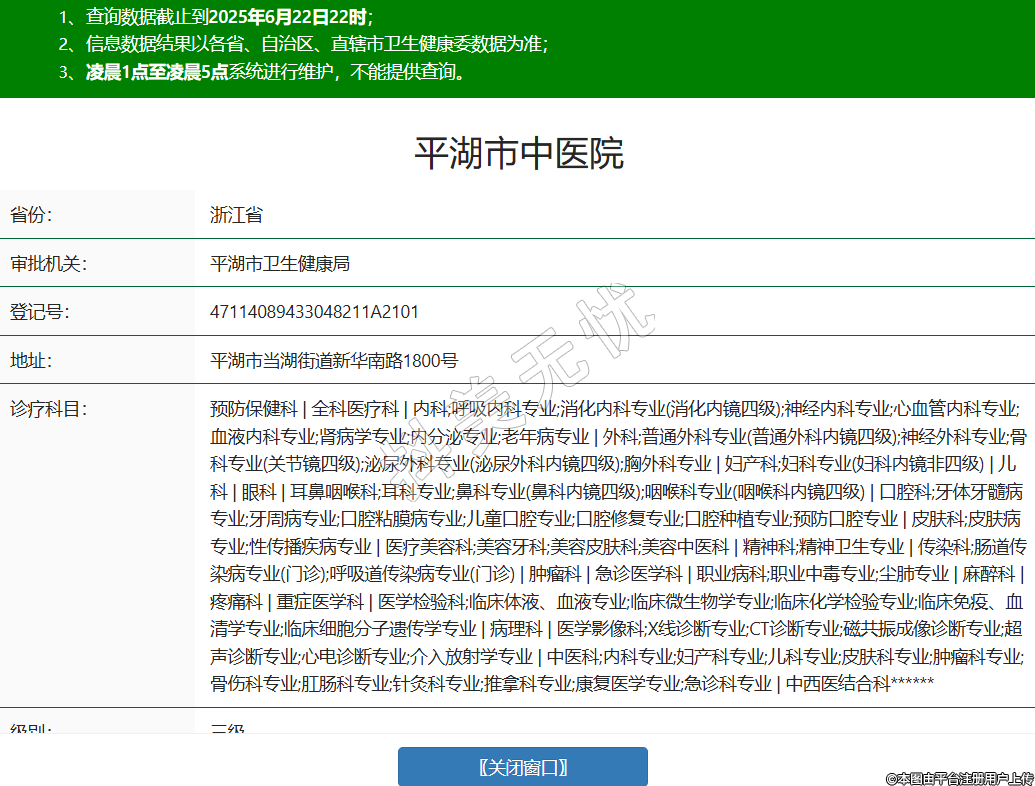 省份:浙江省審批機(jī)關(guān):平湖市衛(wèi)生健康局登記號(hào):47114089433048211A2101地址:平湖市當(dāng)湖街道新華南路1800號(hào)診療科目:預(yù)防保健科 | 全科醫(yī)療科 | 內(nèi)科;呼吸內(nèi)科專業(yè);消化內(nèi)科專業(yè)(消化內(nèi)鏡四級(jí));神經(jīng)內(nèi)科專業(yè);心血管內(nèi)科專業(yè);血液內(nèi)科專業(yè);腎病學(xué)專業(yè);內(nèi)分泌專業(yè);老年病專業(yè) | 外科;普通外科專業(yè)(普通外科內(nèi)鏡四級(jí));神經(jīng)外科專業(yè);骨科專業(yè)(關(guān)節(jié)鏡四級(jí));泌尿外科專業(yè)(泌尿外科內(nèi)鏡四級(jí));胸外科專業(yè) | 婦產(chǎn)科;婦科專業(yè)(婦科內(nèi)鏡非四級(jí)) | 兒科 | 眼科 | 耳鼻咽喉科;耳科專業(yè);鼻科專業(yè)(鼻科內(nèi)鏡四級(jí));咽喉科專業(yè)(咽喉科內(nèi)鏡四級(jí)) | 口腔科;牙體牙髓病專業(yè);牙周病專業(yè);口腔粘膜病專業(yè);兒童口腔專業(yè);口腔修復(fù)專業(yè);口腔種植專業(yè);預(yù)防口腔專業(yè) | 皮膚科;皮膚病專業(yè);性傳播疾病專業(yè) | 醫(yī)療美容科;美容牙科;美容皮膚科;美容中醫(yī)科 | 精神科;精神衛(wèi)生專業(yè) | 傳染科;腸道傳染病專業(yè)(門診);呼吸道傳染病專業(yè)(門診) | 腫瘤科 | 急診醫(yī)學(xué)科 | 職業(yè)病科;職業(yè)中毒專業(yè);塵肺專業(yè) | 麻醉科 | 疼痛科 | 重癥醫(yī)學(xué)科 | 醫(yī)學(xué)檢驗(yàn)科;臨床體液、血液專業(yè);臨床微生物學(xué)專業(yè);臨床化學(xué)檢驗(yàn)專業(yè);臨床免疫、血清學(xué)專業(yè);臨床細(xì)胞分子遺傳學(xué)專業(yè) | 病理科 | 醫(yī)學(xué)影像科;X線診斷專業(yè);CT診斷專業(yè);磁共振成像診斷專業(yè);超聲診斷專業(yè);心電診斷專業(yè);介入放射學(xué)專業(yè) | 中醫(yī)科;內(nèi)科專業(yè);婦產(chǎn)科專業(yè);兒科專業(yè);皮膚科專業(yè);腫瘤科專業(yè);骨傷科專業(yè);肛腸科專業(yè);針灸科專業(yè);推拿科專業(yè);康復(fù)醫(yī)學(xué)專業(yè);急診科專業(yè) | 中西醫(yī)結(jié)合科******級(jí)別:三級(jí)法定代表人:吳勇彬主要負(fù)責(zé)人:吳勇彬執(zhí)業(yè)許可證有效期:2024/02/05 -至- 2027/02/04 -