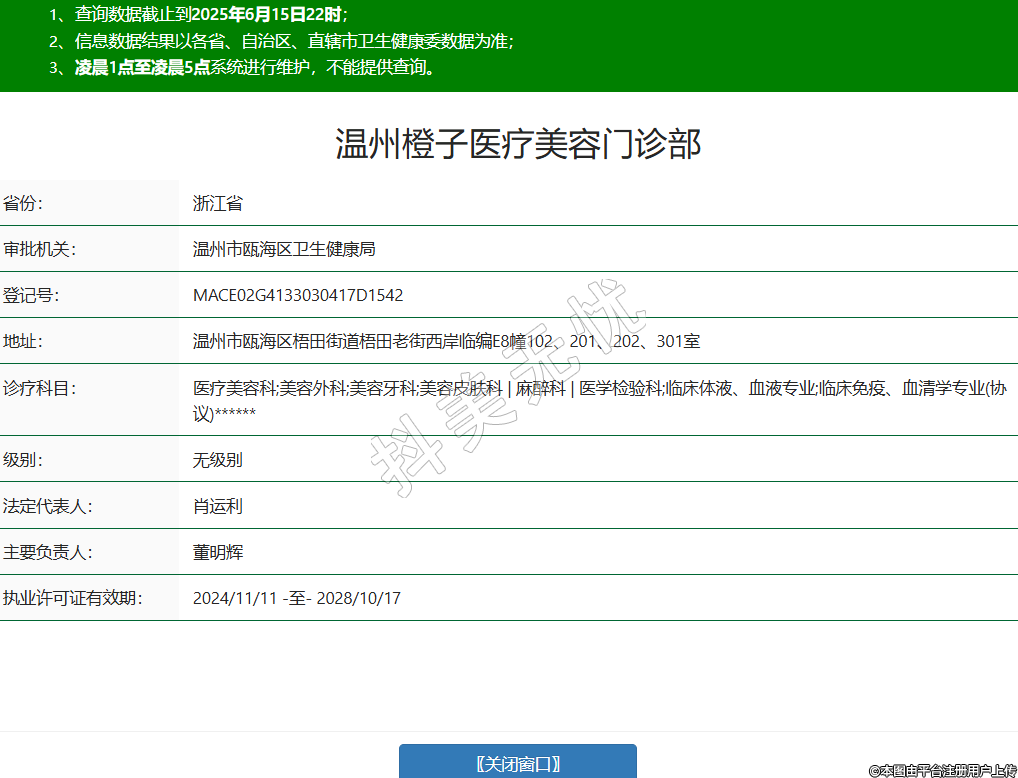 省份:浙江省審批機關(guān):溫州市甌海區(qū)衛(wèi)生健康局登記號:MACE02G4133030417D1542地址:溫州市甌海區(qū)梧田街道梧田老街西岸臨編E8幢102、201、202、301室診療科目:醫(yī)療美容科;美容外科;美容牙科;美容皮膚科 | 麻醉科 | 醫(yī)學(xué)檢驗科;臨床體液、血液專業(yè);臨床免疫、血清學(xué)專業(yè)(協(xié)議)******級別:無級別法定代表人:肖運利主要負責(zé)人:董明輝執(zhí)業(yè)許可證有效期:2024/11/11 -至- 2028/10/17 -