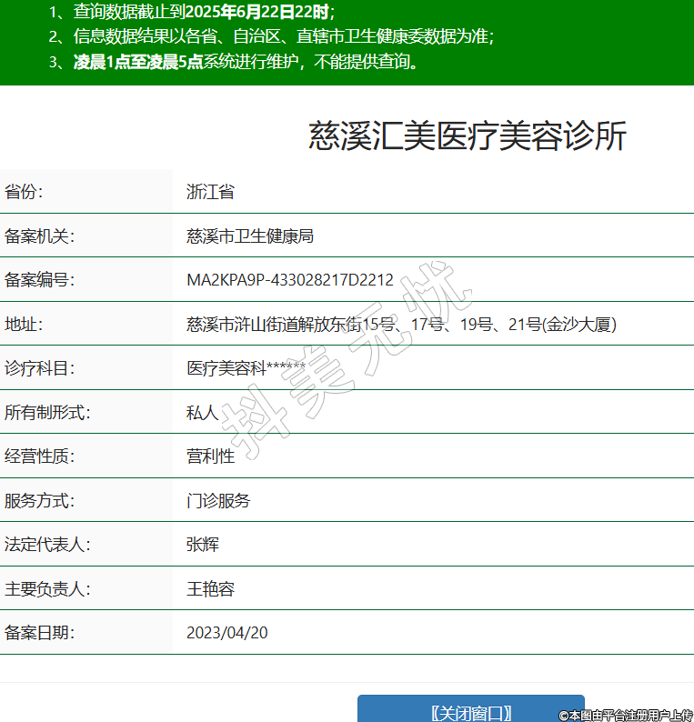 省份:浙江省備案機(jī)關(guān):慈溪市衛(wèi)生健康局備案編號(hào):MA2KPA9P-433028217D2212地址:慈溪市滸山街道解放東街15號(hào)、17號(hào)、19號(hào)、21號(hào)(金沙大廈)診療科目:醫(yī)療美容科******所有制形式:私人經(jīng)營性質(zhì):營利性服務(wù)方式:門診服務(wù)法定代表人:張輝主要負(fù)責(zé)人:王艷容備案日期:2023/04/20 -