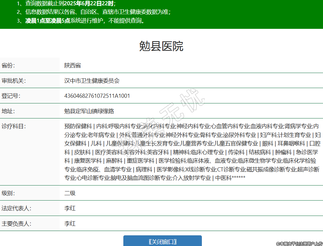 省份:陜西省審批機關(guān):漢中市衛(wèi)生健康委員會登記號:43604682761072511A1001地址:勉縣定軍山鎮(zhèn)綠緣路診療科目:預(yù)防保健科 | 內(nèi)科;呼吸內(nèi)科專業(yè);消化內(nèi)科專業(yè);神經(jīng)內(nèi)科專業(yè);心血管內(nèi)科專業(yè);血液內(nèi)科專業(yè);腎病學(xué)專業(yè);內(nèi)分泌專業(yè);老年病專業(yè) | 外科;普通外科專業(yè);神經(jīng)外科專業(yè);骨科專業(yè);泌尿外科專業(yè) | 婦產(chǎn)科;計劃生育專業(yè) | 婦女保健科 | 兒科 | 兒童保健科;兒童生長發(fā)育專業(yè);兒童營養(yǎng)專業(yè);兒童五官保健專業(yè) | 眼科 | 耳鼻咽喉科 | 口腔科 | 皮膚科 | 醫(yī)療美容科;美容外科;美容牙科 | 精神科;臨床心理專業(yè) | 傳染科 | 結(jié)核病科 | 腫瘤科 | 急診醫(yī)學(xué)科 | 康復(fù)醫(yī)學(xué)科 | 麻醉科 | 重癥醫(yī)學(xué)科 | 醫(yī)學(xué)檢驗科;臨床體液、血液專業(yè);臨床微生物學(xué)專業(yè);臨床化學(xué)檢驗專業(yè);臨床免疫、血清學(xué)專業(yè) | 病理科 | 醫(yī)學(xué)影像科;X線診斷專業(yè);CT診斷專業(yè);磁共振成像診斷專業(yè);超聲診斷專業(yè);心電診斷專業(yè);腦電及腦血流圖診斷專業(yè);介入放射學(xué)專業(yè) | 中醫(yī)科******級別:二級法定代表人:李紅主要負(fù)責(zé)人:李紅執(zhí)業(yè)許可證有效期:2022/12/09 -至- 2027/12/08 -