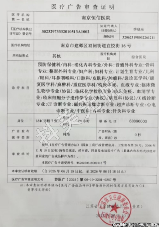 機構(gòu)名稱:南京恒信醫(yī)院