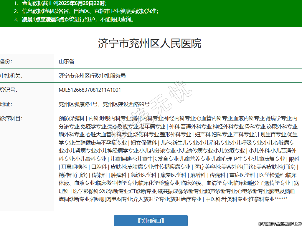 省份:山東省審批機關:濟寧市兗州區(qū)行政審批服務局登記號:MJE51266837081211A1001地址:兗州區(qū)健康路1號、兗州區(qū)建設西路99號診療科目:預防保健科 | 內科;呼吸內科專業(yè);消化內科專業(yè);神經內科專業(yè);心血管內科專業(yè);血液內科專業(yè);腎病學專業(yè);內分泌專業(yè);免疫學專業(yè);變態(tài)反應專業(yè);老年病專業(yè) | 外科;普通外科專業(yè);神經外科專業(yè);骨科專業(yè);泌尿外科專業(yè);胸外科專業(yè);心臟大血管外科專業(yè);燒傷科專業(yè);整形外科專業(yè) | 婦產科;婦科專業(yè);產科專業(yè);計劃生育專業(yè);優(yōu)生學專業(yè);生殖健康與不孕癥專業(yè) | 婦女保健科 | 兒科;新生兒專業(yè);小兒消化專業(yè);小兒呼吸專業(yè);小兒心臟病專業(yè);小兒腎病專業(yè);小兒神經病學專業(yè);小兒內分泌專業(yè);小兒遺傳病專業(yè);小兒免疫專業(yè) | 小兒外科;小兒普通外科專業(yè);小兒骨科專業(yè) | 兒童保健科;兒童生長發(fā)育專業(yè);兒童營養(yǎng)專業(yè);兒童心理衛(wèi)生專業(yè);兒童康復專業(yè) | 眼科 | 耳鼻咽喉科 | 口腔科 | 皮膚科;皮膚病專業(yè);性傳播疾病專業(yè) | 醫(yī)療美容科;美容外科(門診);美容皮膚科(門診) | 精神科(門診) | 傳染科 | 腫瘤科 | 急診醫(yī)學科 | 康復醫(yī)學科 | 麻醉科 | 疼痛科 | 重癥醫(yī)學科 | 醫(yī)學檢驗科;臨床體液、血液專業(yè);臨床微生物學專業(yè);臨床化學檢驗專業(yè);臨床免疫、血清學專業(yè);臨床細胞分子遺傳學專業(yè) | 病理科 | 醫(yī)學影像科;X線診斷專業(yè);CT診斷專業(yè);磁共振成像診斷專業(yè);超聲診斷專業(yè);心電診斷專業(yè);腦電及腦血流圖診斷專業(yè);神經肌肉電圖專業(yè);介入放射學專業(yè);放射治療專業(yè) | 中醫(yī)科;針灸科專業(yè);推拿科專業(yè)******級別:三級法定代表人:汪新民主要負責人:汪新民執(zhí)業(yè)許可證有效期:2025/06/23 -至- 2039/12/31 -